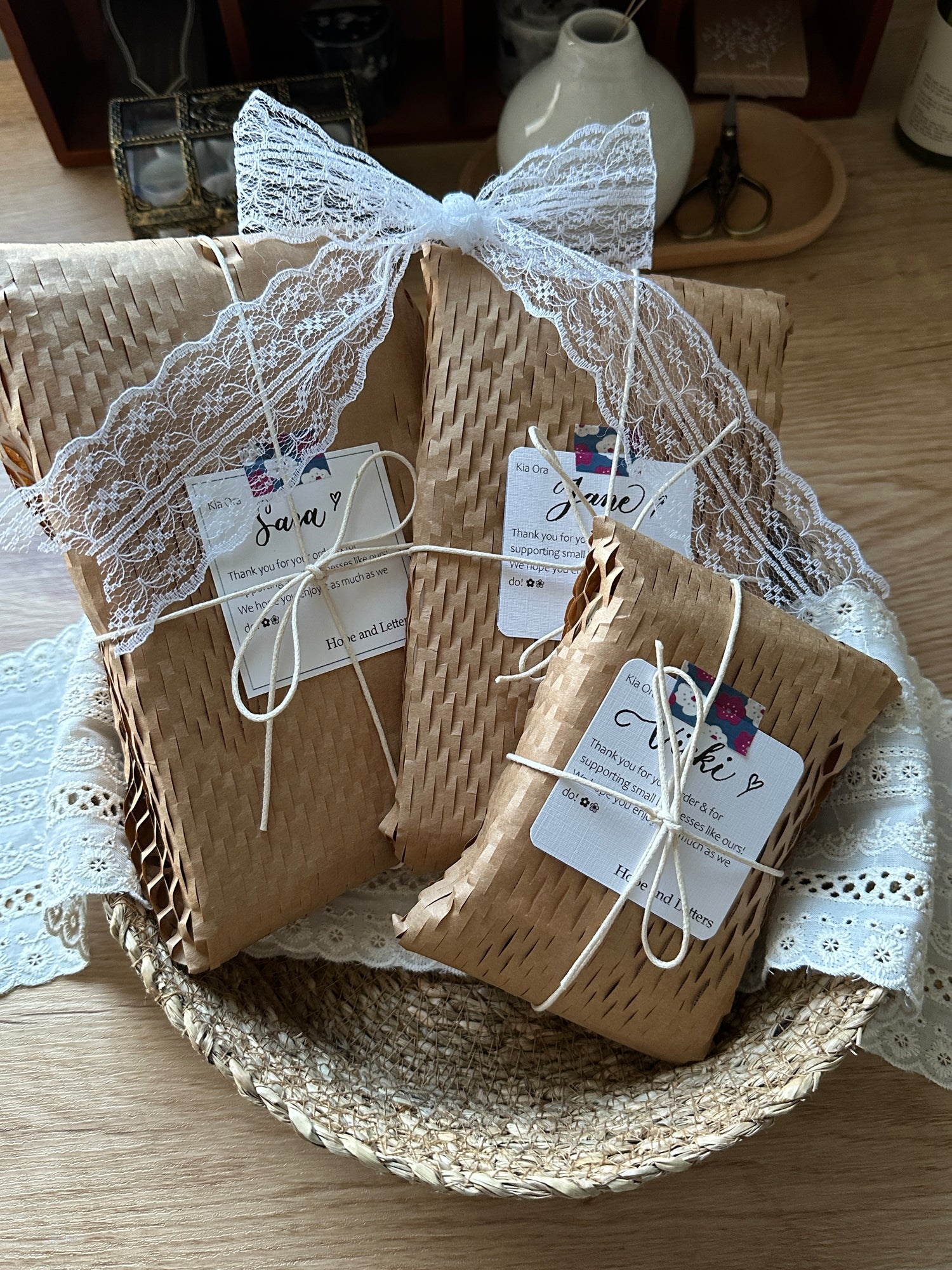 At Hope and Letters, we thoughtfully wrap every order to make your unboxing experience feel special. Using sustainable honeycomb kraft paper for protection and tying it with a charming string, we aim to create the feeling of a gift just for you.