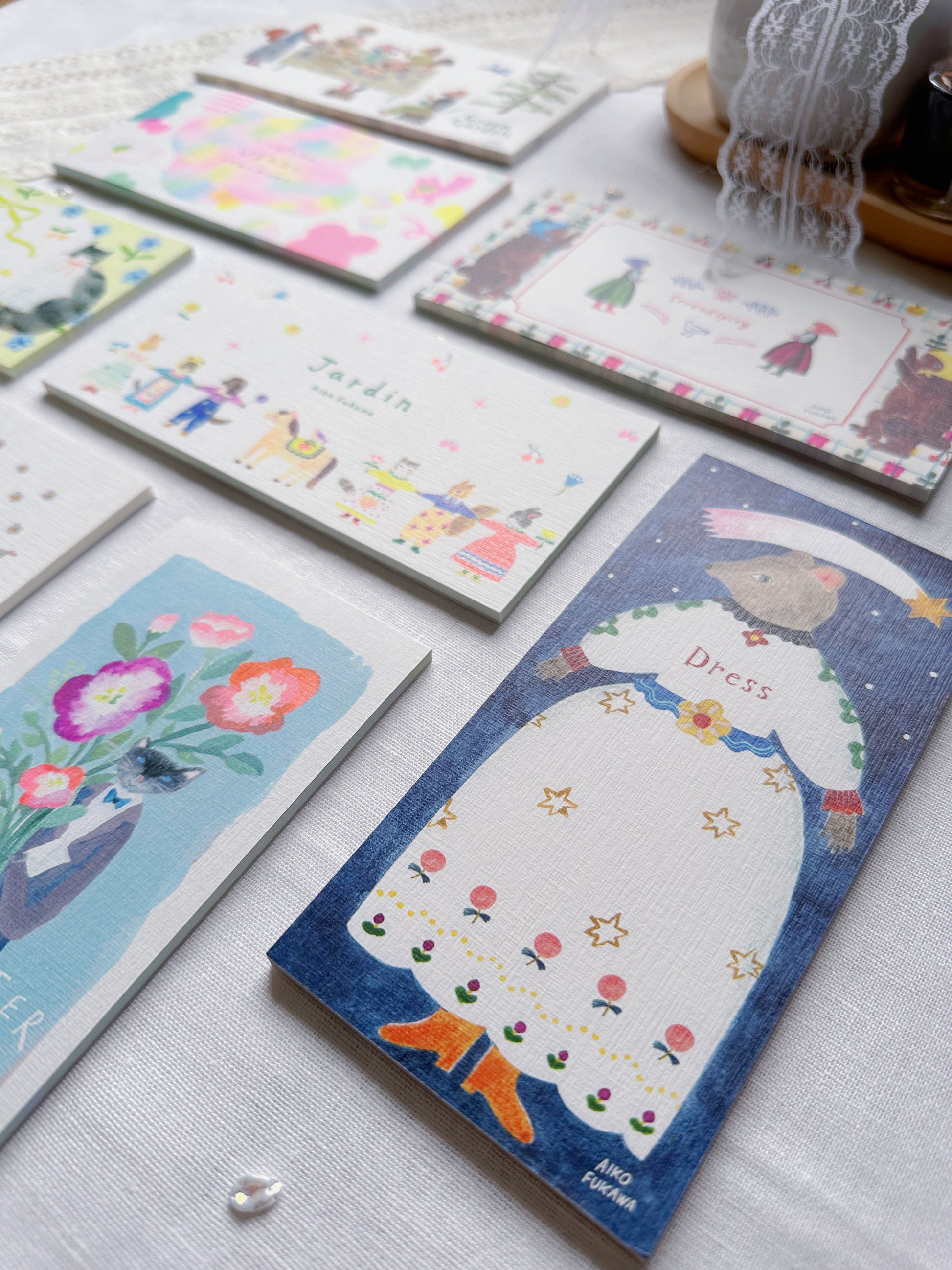 Step into a world of charm and elegance with the Aiko Fukawa Dress Memo Pad. This delightful pad features whimsical illustrations of adorable animals—including a bear, fox, rabbit, and more—each dressed in beautifully detailed outfits. Aiko Fukawa’s signature touch brings these characters to life, making every sheet feel like a page from a storybook.