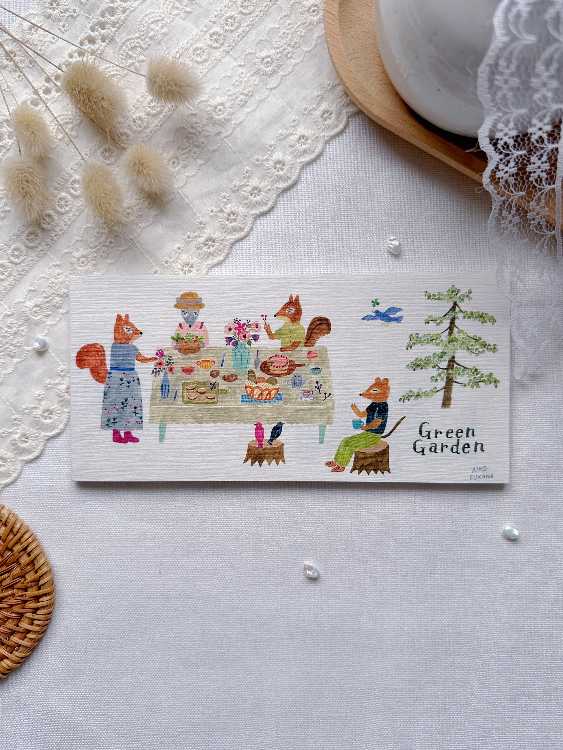 Step into the enchanting world of the Aiko Fukawa Green Garden Memo Pad, where a whimsical forest party is in full swing. Imagine a gathering of charming woodland creatures sharing laughter and stories under a canopy of lush greenery. From a fox hosting a cozy tea party to a rabbit gracefully dancing in a floral wreath, each design captures a delightful moment in this magical garden. You can almost hear their cheerful chatter and the rustling of leaves in the background.