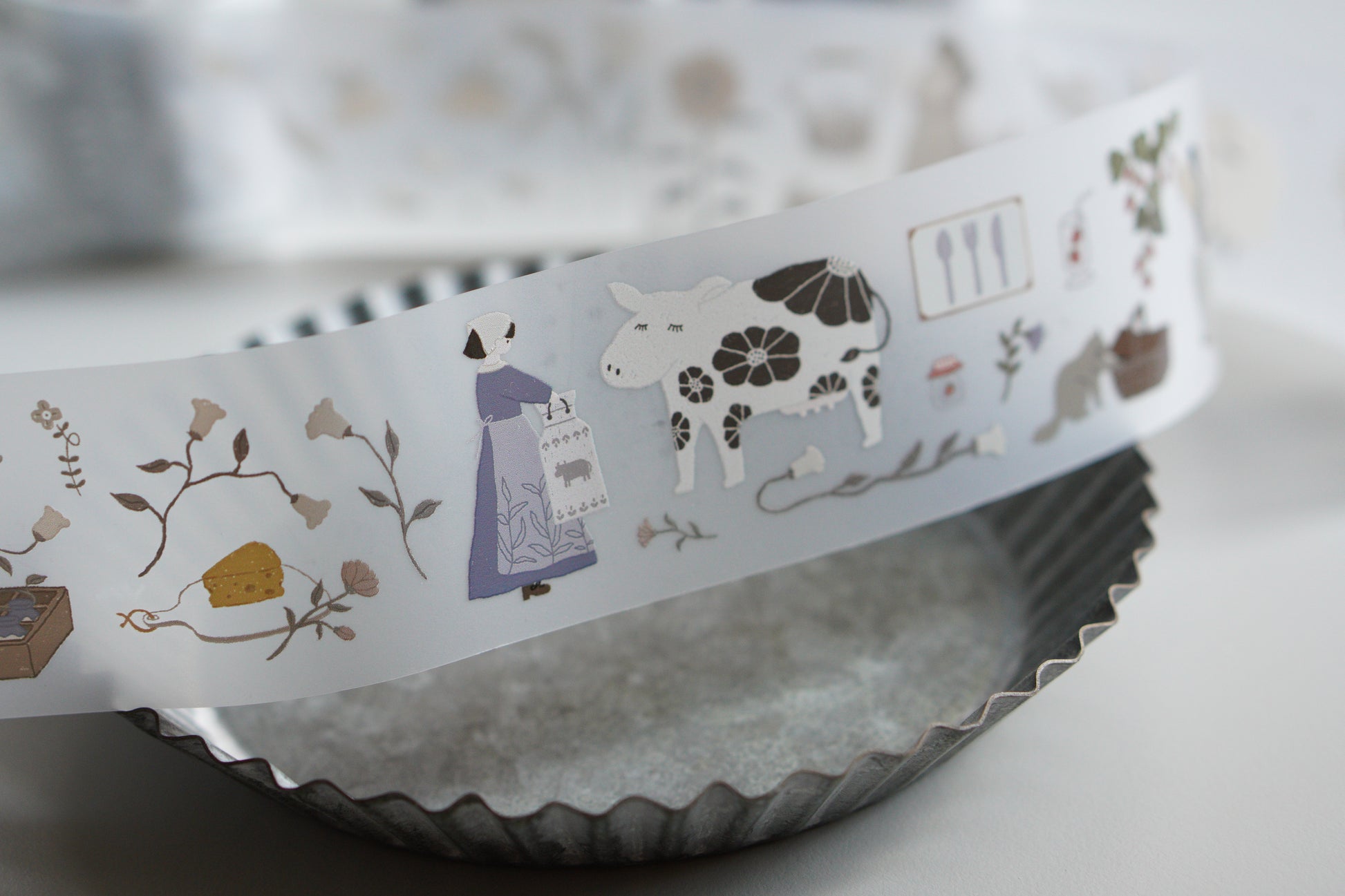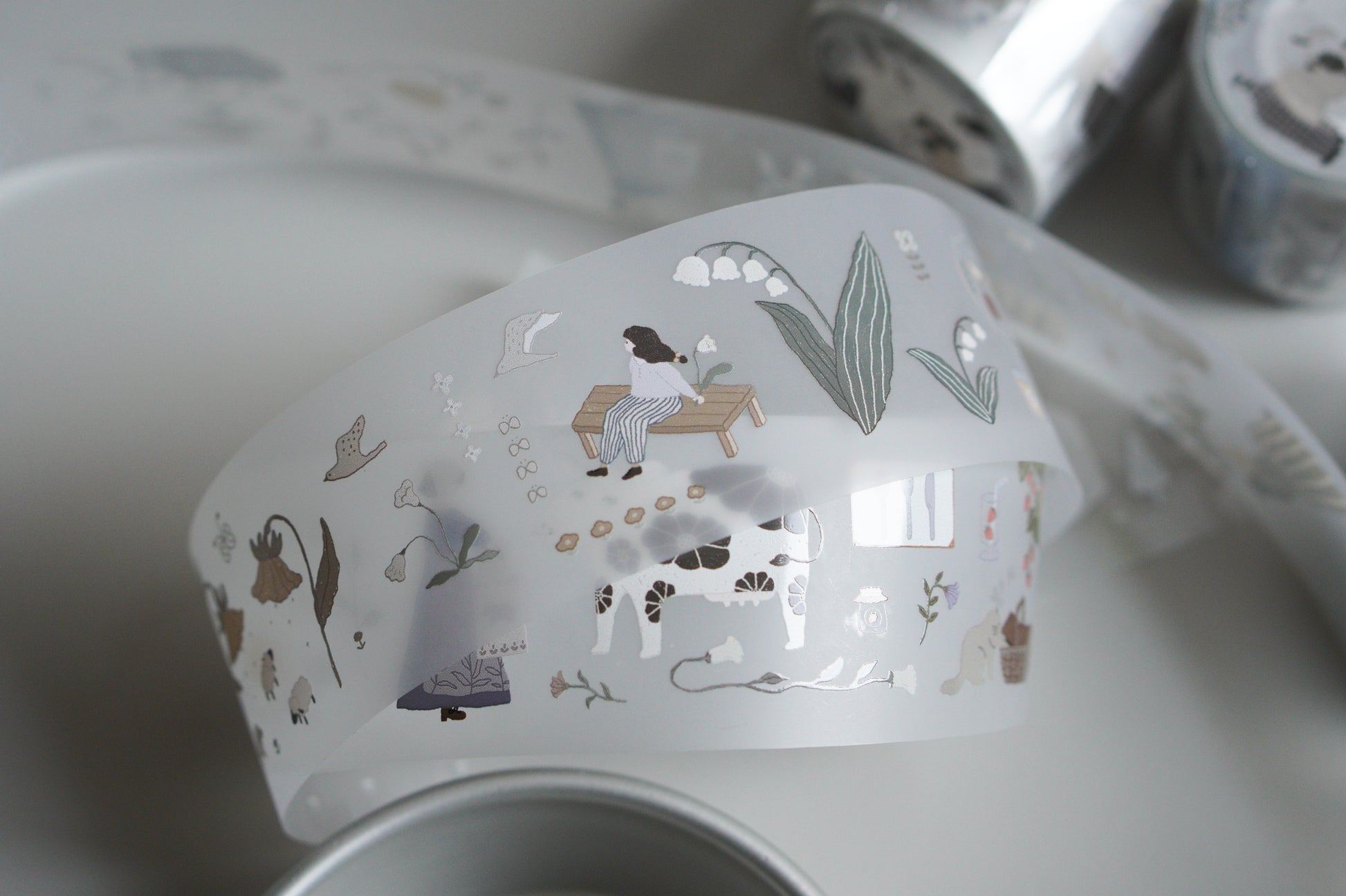 Embrace the peaceful essence of rural life with At the Farm PET Tape illustrated by Ivy Snow, Taiwan. Each illustration invites you into a quaint world where nature and tradition meet, capturing the charm of farm living in every scene.