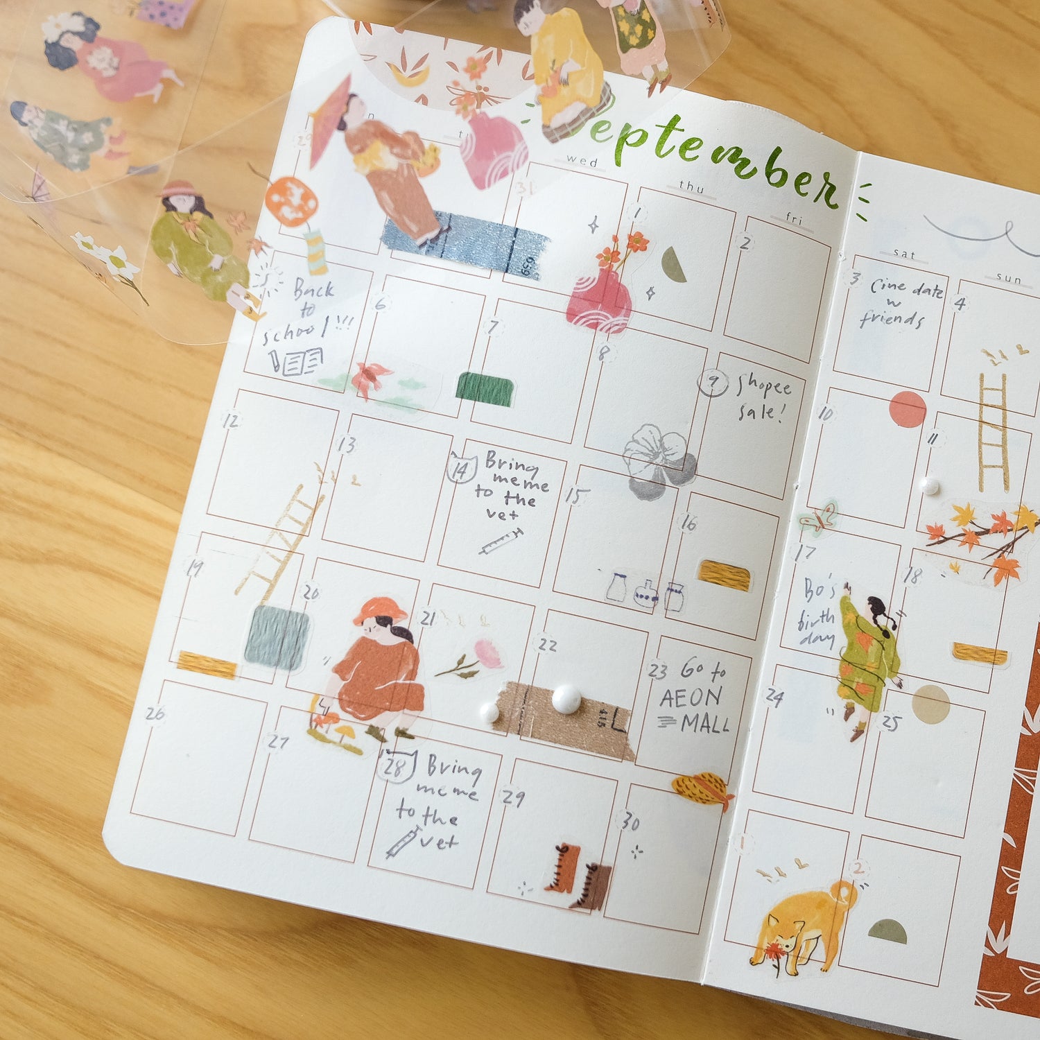 Add a touch of seasonal charm to your journals, notes and creative projects with our Autumn Fairies Series PET tape! This exquisite roll features a stunning collection of autumn-inspired designs, including vibrant persimmons, delicate sage leaves, iconic momiji leaves, along with little fairies enjoying the season’s splendor. Each design evokes a warm, nostalgic feel, celebrating the spirit of fall in Japan.