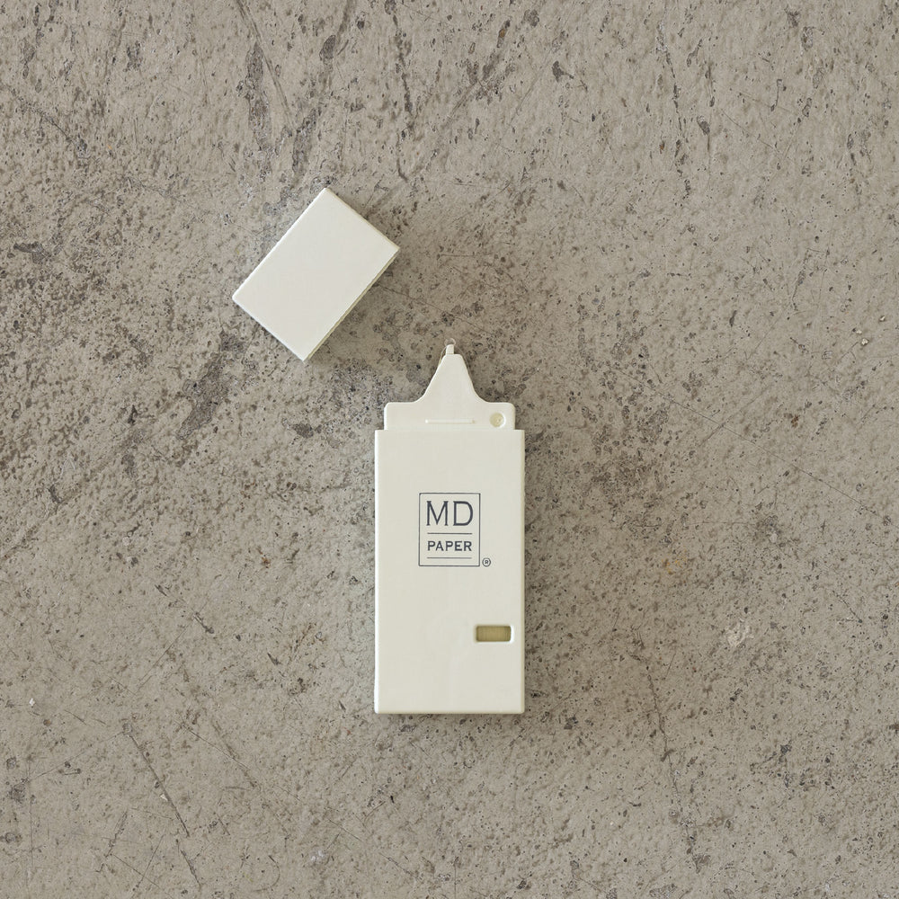 Designed to seamlessly complement the iconic MD Notebook, the Midori MD Correction Tape in ivory/cream offers a subtle and elegant solution for correcting writing errors. Its cream-colored tape is specially formulated to match the tone and texture of MD PAPER, allowing corrections to blend naturally into the page without drawing attention.