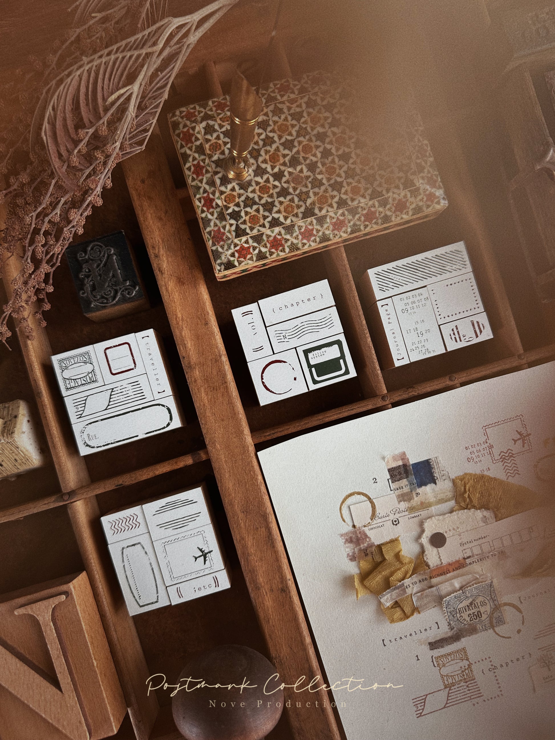 This Postmark Collection Rubber Stamp Set (5 pieces) features a variety of postal-themed designs, including an airplane, postmark lines, and stamp borders that evoke the charm of vintage mail and a sense of adventure. Each stamp is finely detailed, allowing you to create realistic postal effects for your journal spreads, letters, postcards, or crafts.