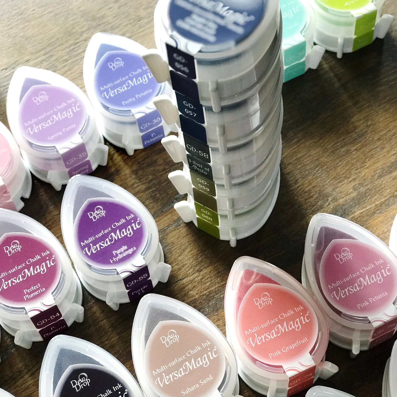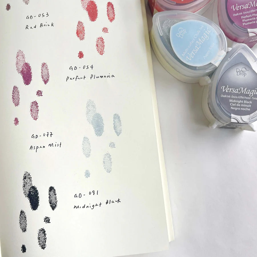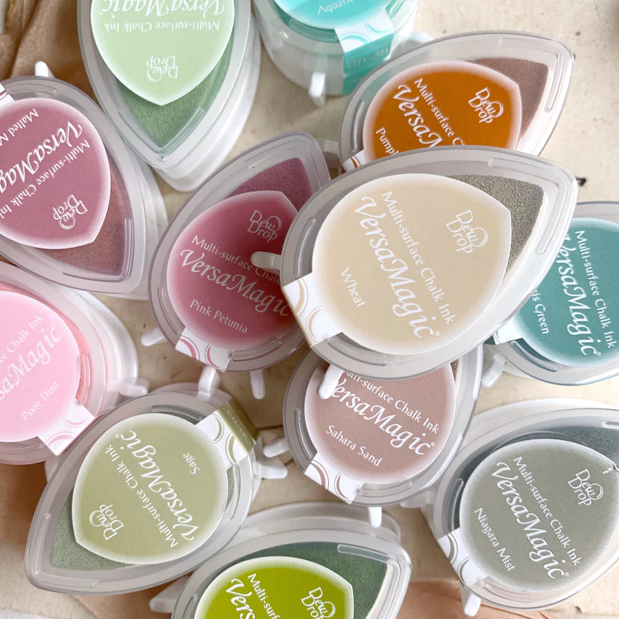 Tsukineko Dew Drop VersaMagic Ink Pad – the ultimate multi-surface, premium chalk ink solution designed to deliver a stunning, opaque powder finish on virtually any project.