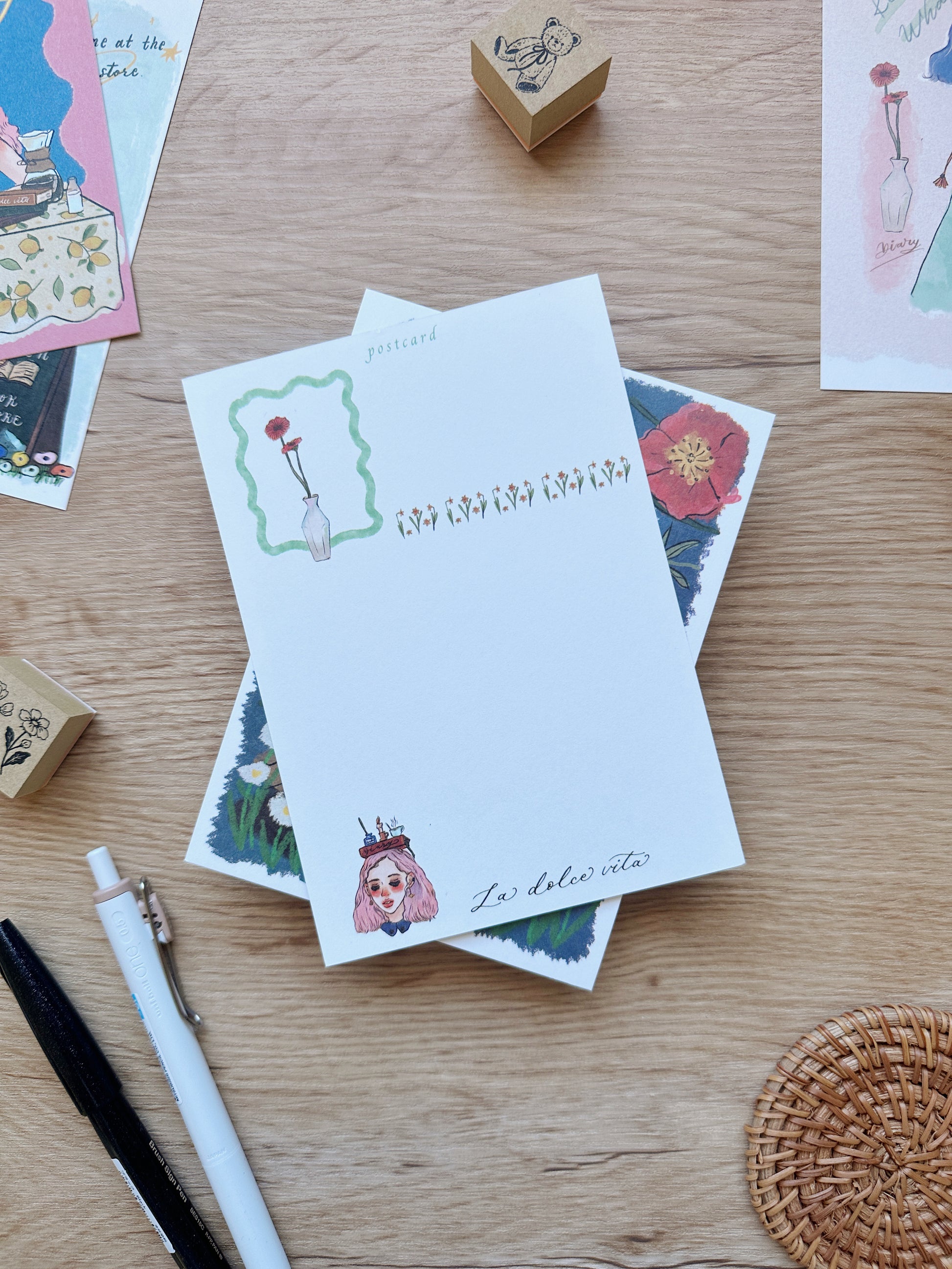 A timeless and elegant postcard with a rich, vintage charm. The deep hues and graceful floral accents evoke warmth and quiet confidence. A gentle reminder that you are the blooming season—ever-growing, radiant, and full of life. Perfect for heartfelt messages, journaling, or keeping as a cherished keepsake.